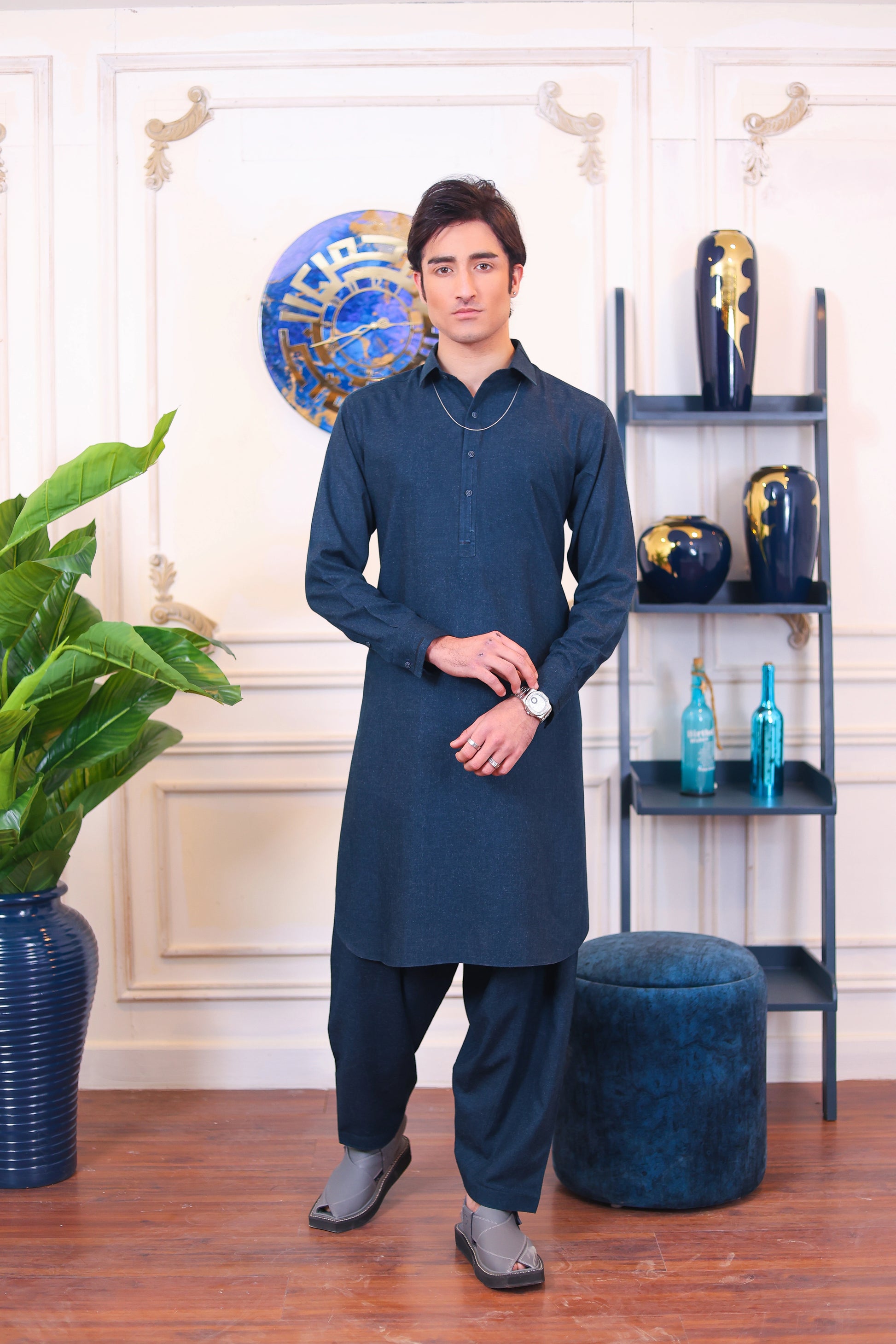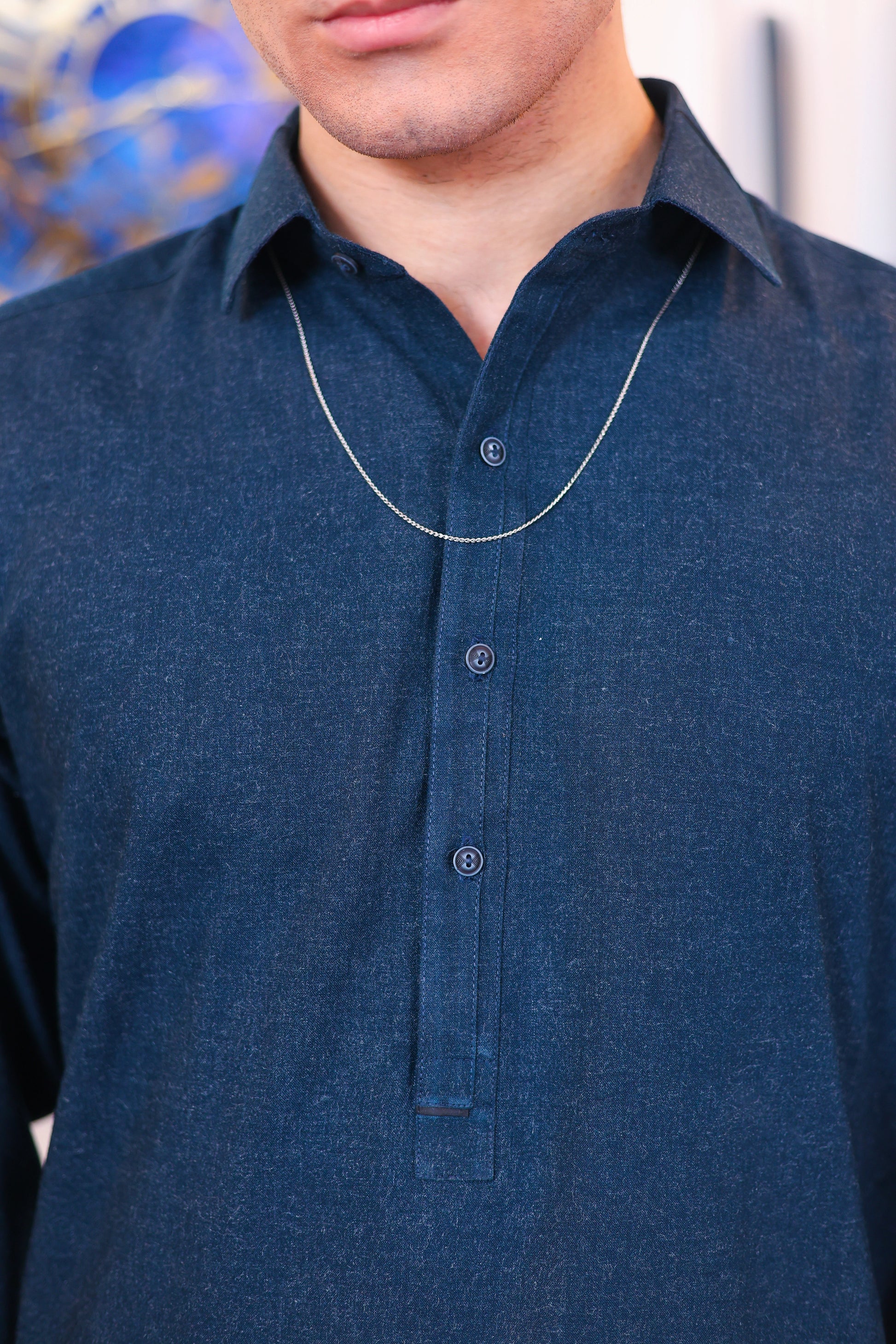 Finest Quality Wool Kameez Shalwar – Navy Blue