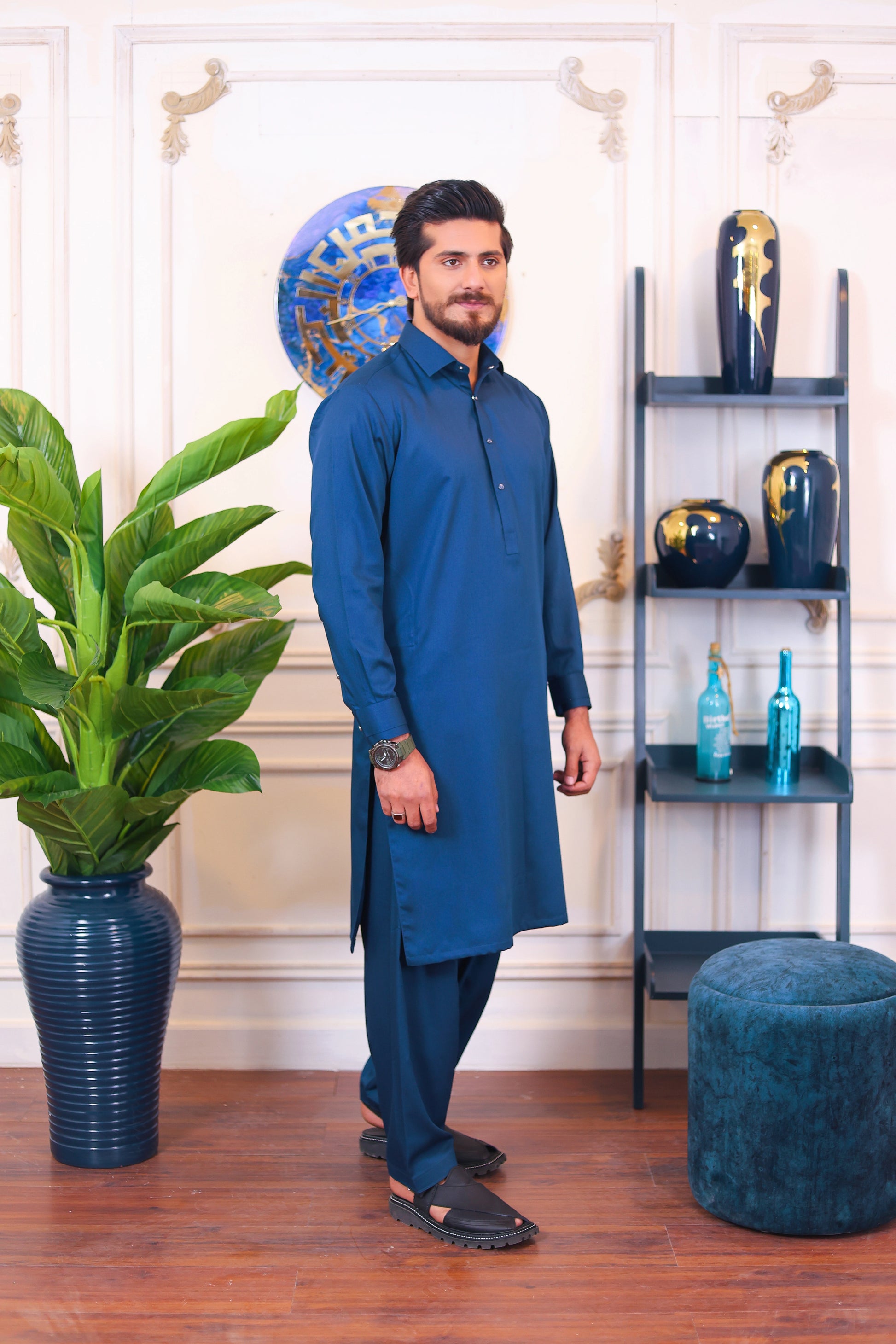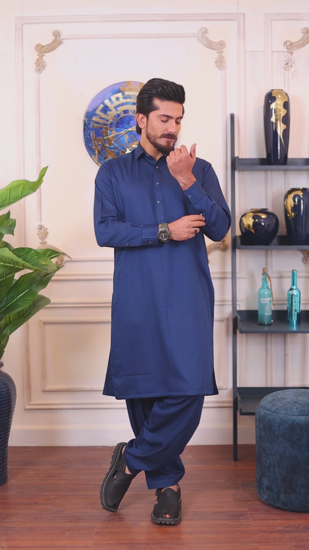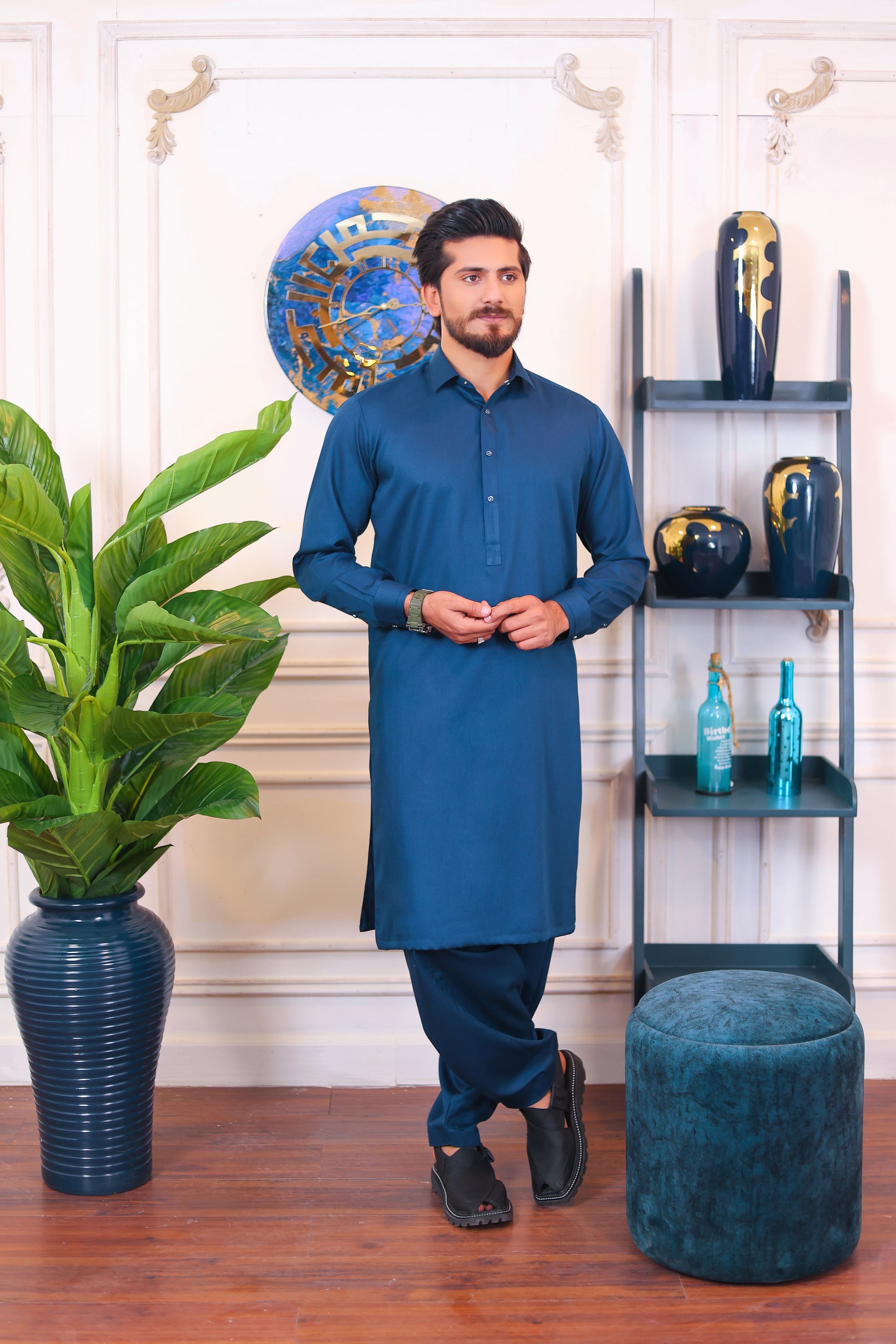 Premium English Suiting Wash and Wear Kameez Shalwar – Navy Blue