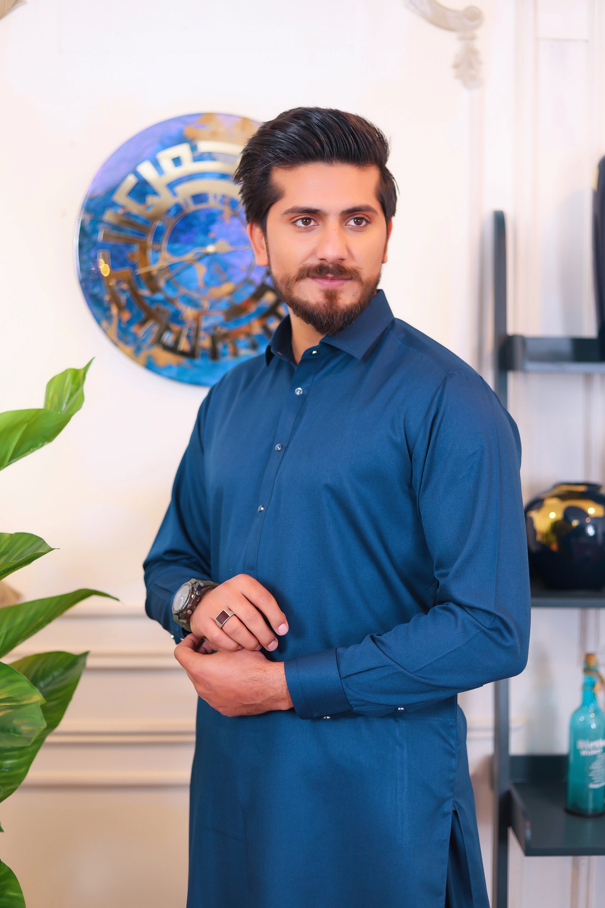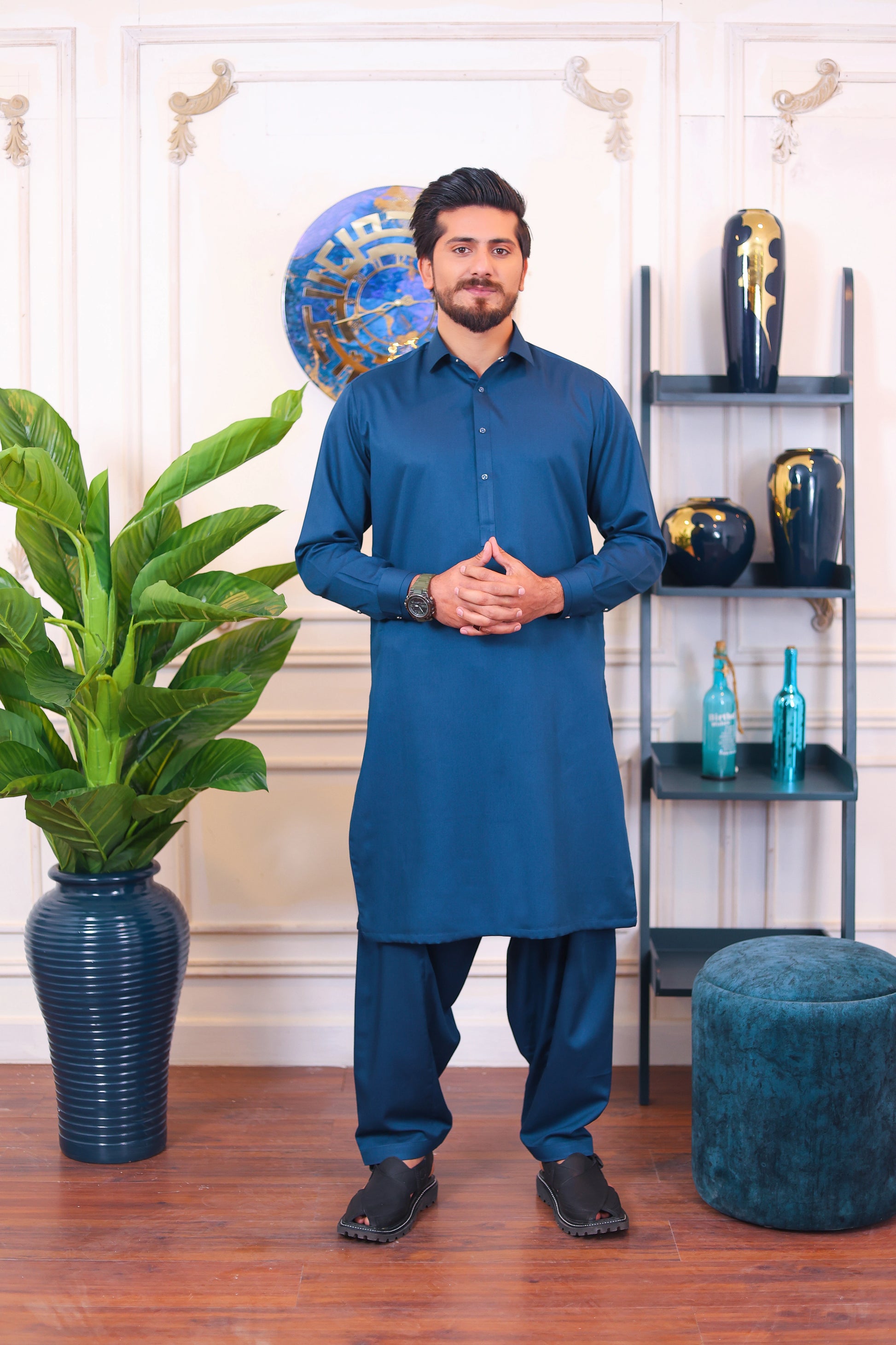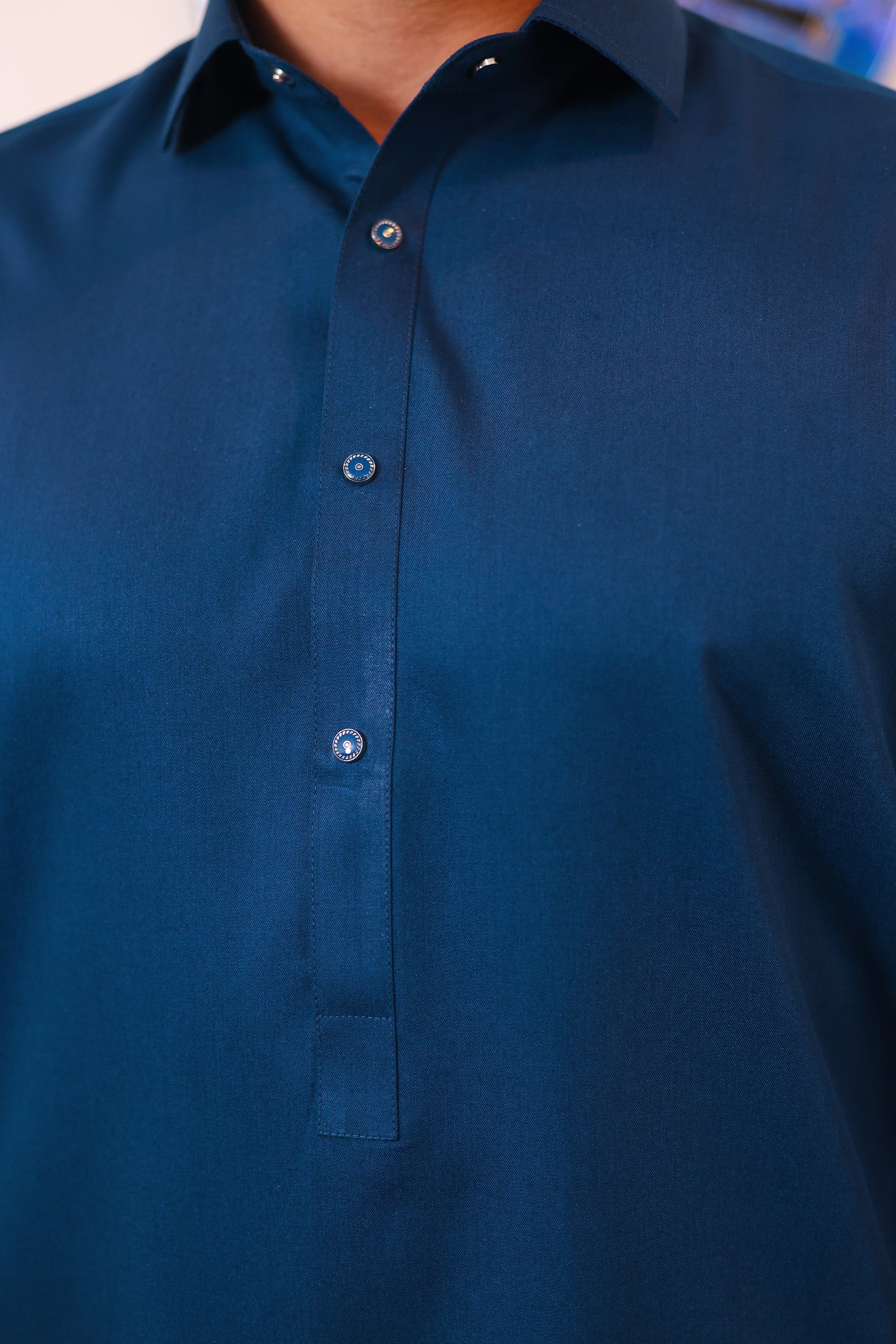 Premium English Suiting Wash and Wear Kameez Shalwar – Navy Blue