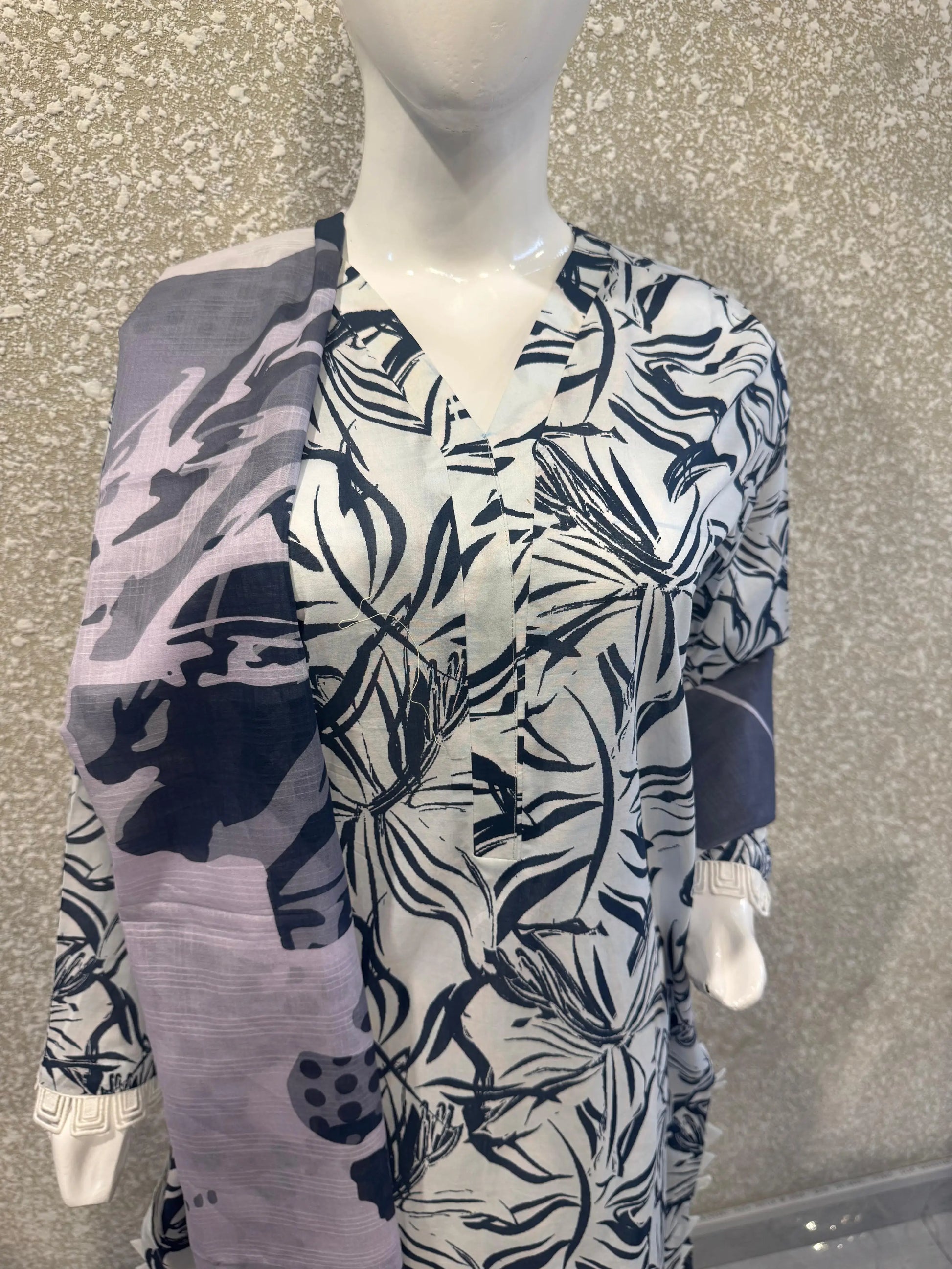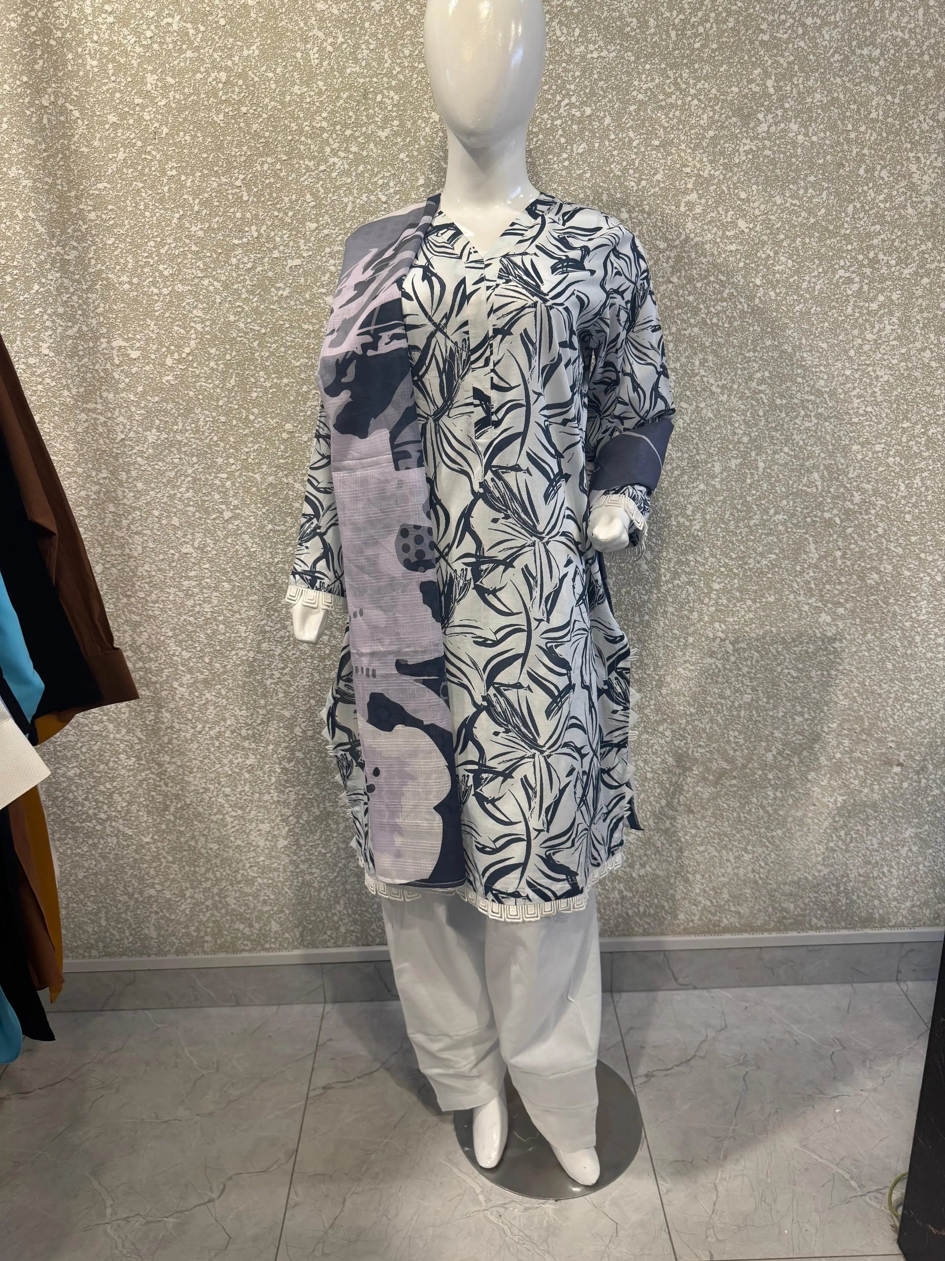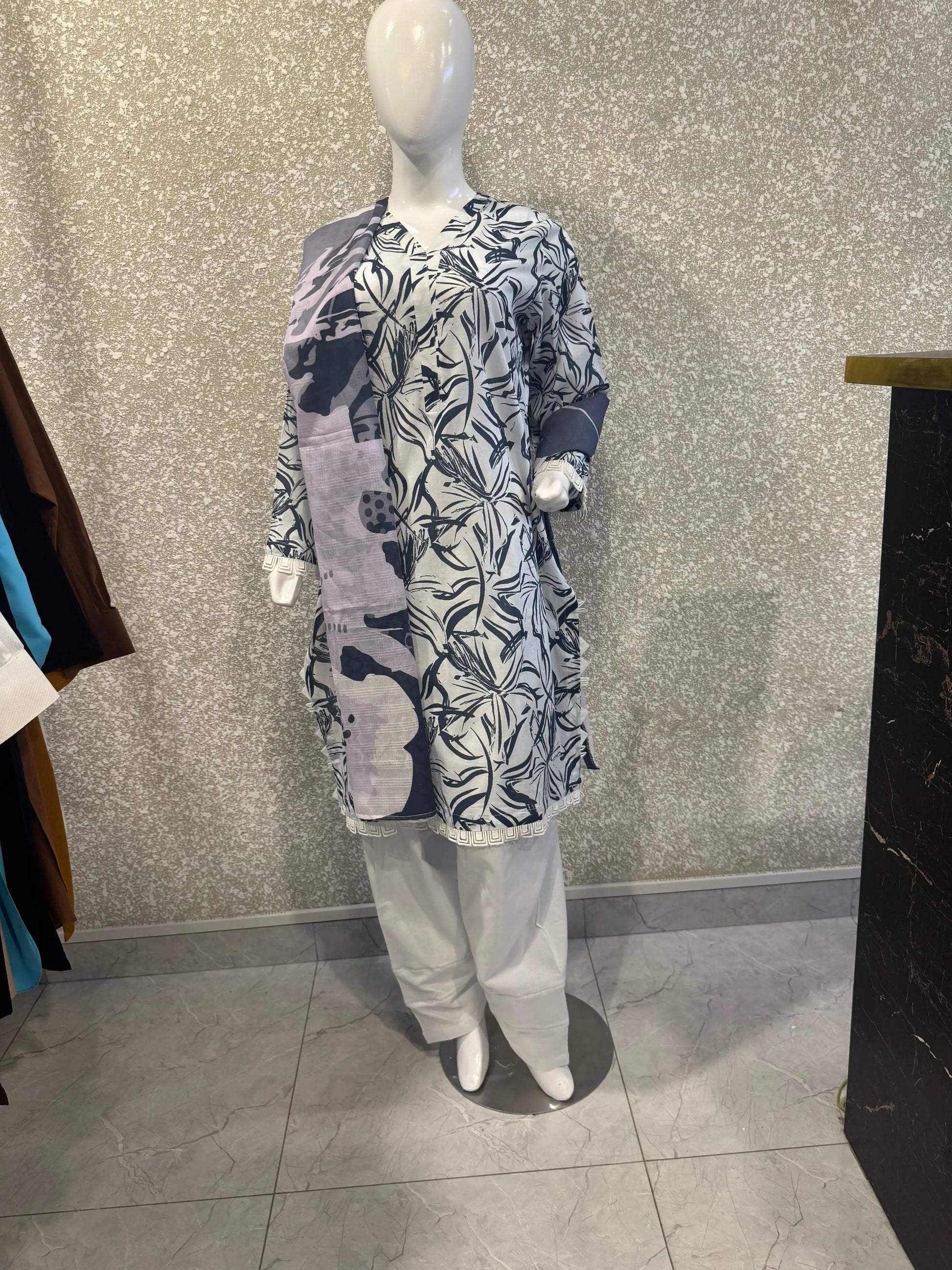 Premium Ladies Lawn Stitched - Gray & Navy